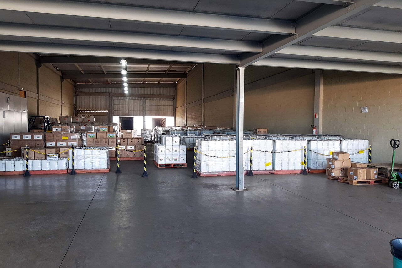 Contamos com uma estrutura de 1.200 m² de plataforma para manuseio e armazenamento de mercadorias.